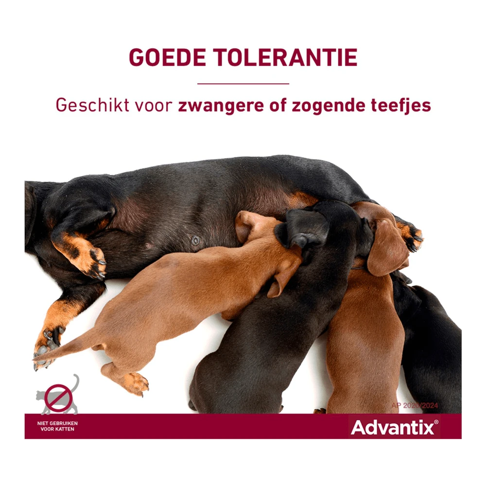 Honden kunnen last krijgen van veel verschillende parasieten, zoals vlooien en teken. Deze diertjes zijn vervelend voor jou en je dier, als je pech hebt kan je hond er zelfs ziek van worden. Een behandeling met een breedspectrum parasietenmiddel, zoals Advantix 600, geeft jouw hond de beste bescherming tegen ongewenste gasten. Advantix doodt vlooien, vlooienlarven en teken en werkt daarnaast afwerend tegen teken, muggen, zandvliegen en stalvliegen.