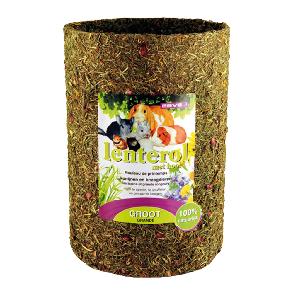 ESVE Lenterol is speelgoed en behuizing in één en speciaal geschikt voor hobby konijnen en knaagdieren. Gemaakt van 100% natuurlijke materialen en zonder kunstmatige kleefstoffen. Hobby konijnen en knaagdieren zijn dol op LENTE-rollen, met bloemen en kruiden, VERS van de bergweide. Verveling, gebrek aan ESVE-knaaghout en goede voeding bij knaagdieren en konijnen, leiden vaak tot afwijkend gedrag en vachtproblemen. Met de LENTE-rol hoeft uw dier zich niet meer te vervelen. Aanvullend diervoeder voor hobby konijnen en knaagdieren.