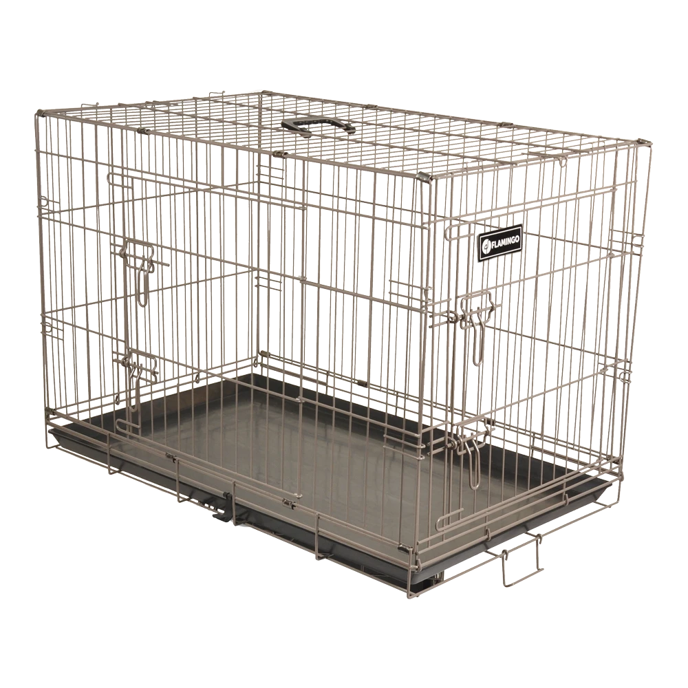 Ben je opzoek naar een comfortabele bench voor je hond? De hondenbench van Flamingo dient als veilige rustplek voor je hond. De bench beschikt over twee deuren, zodat je de bench op verschillende manieren kan gebruiken. De hondenbench is gemakkelijk op te bouwen en te verplaatsen met het handvat aan de bovenkant. De bodem van de bench is gemakkelijk schoon te maken en te verwisselen. Het metaal is voorzien van een poedercoating om roestvorming te voorkomen. Deze comfortabele hondenbench is verkrijgbaar in vijf verschillende maten en twee kleuren zwart en taupe.